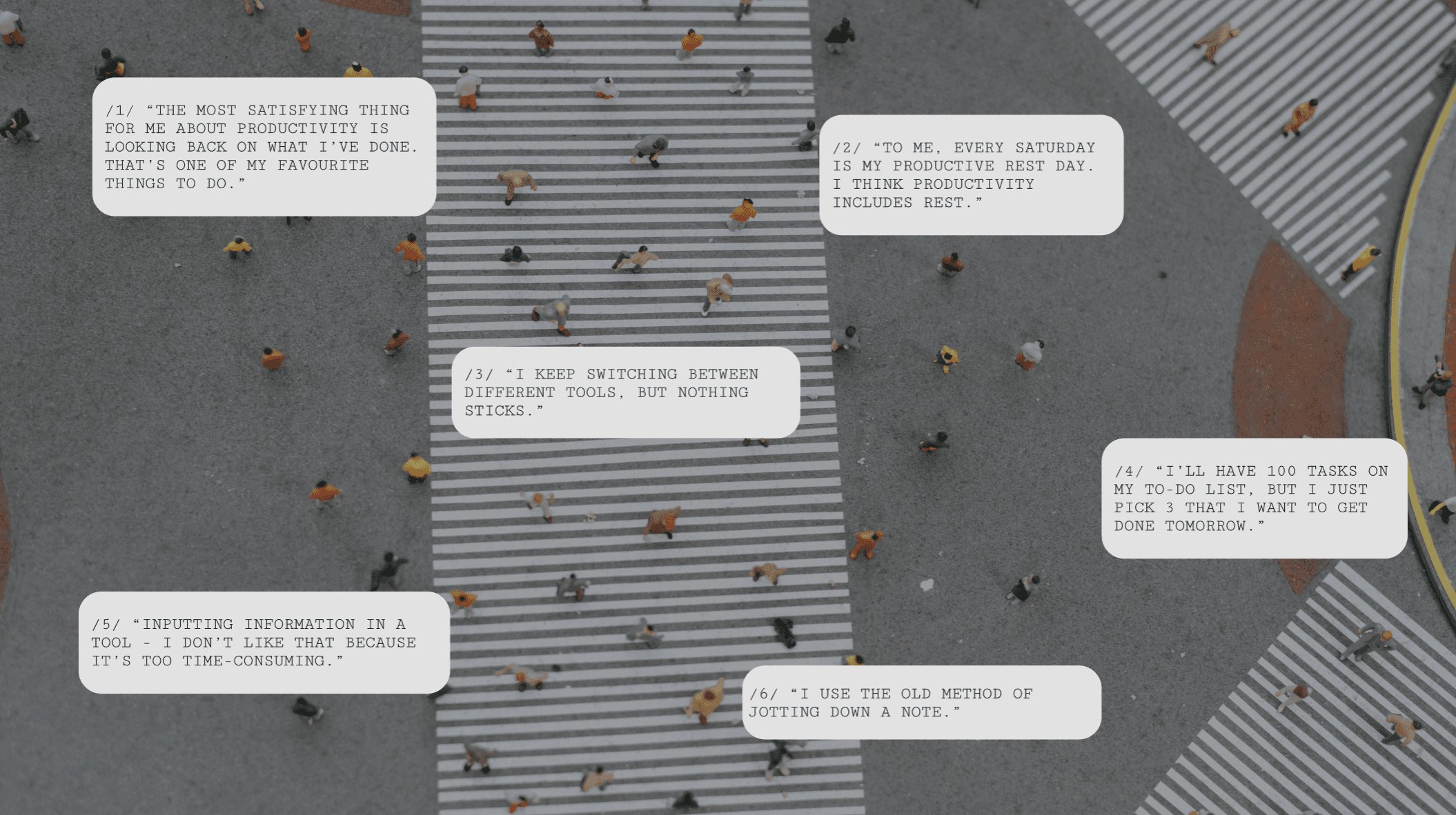 too many tools exist in people's productivity lifecycle, but an overwhelming number of things to write down and remember where it was written, resulting in a loss of motivation.